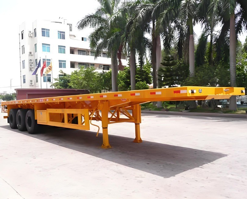Caractéristiques: La semi-remorque à plaques plates est une sorte de semi-remorque sans paroi ni couverture, avec une structure simple et une adaptabilité à la rigueur,