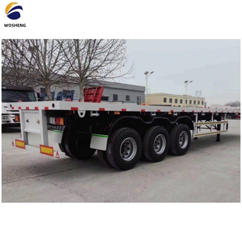 1La remorque à conteneurs à plat est le principal produit de notre société, elle est faite d'acier de haute résistance, de haute épaisseur, contenant 0,98‰ de titane,qui assurent la ténacité et la résistance de la poutre et du cadreLa capacité maximale de chargement: 20 à 100 tonnes